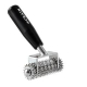 This hand roller for rolling vinyl at seams and other areas has a round edge solid steel roller and longer nine inch varnished wooden handle. The round edge on this roller allows it to work up close to vinyl flash coving, where a square edge roller can’t go. The roller face has an ultra-smooth, zinc-plated surface finish to minimize scratching and indentations. Ball bearing construction produces a smooth rolling action that is designed to last. Net weight: 900grams