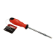 The Faithfulls heavy duty scraper similar in style to the Roberts 12″ hand scraper, it has a hardened rippled plastic handle for a more secure grip so less likely to avoid slippage when exerting force on the lift up of old adhesives or bits of stuck down tiles etc, a hollowed metal stem that aids with weight and is strong & durable, the housing that holds the blade is 100mm (4″inches) wide, the top of the handle can be screwed off and has a phillip’s head attached to aid loosening of the screws so the blade can be removed and replaced. Inside the handle there are five spare blades that come with the scraper.